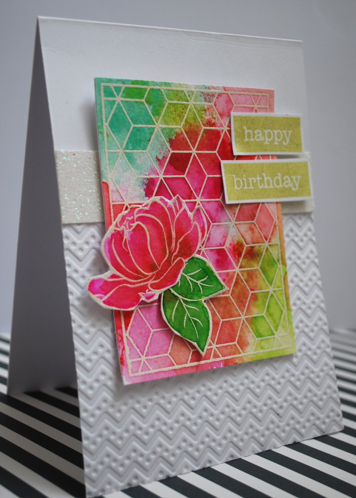Create a card with geometric pattern on. You can choose your pattern as a background or focal point. It's entire up to you.